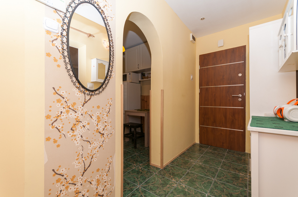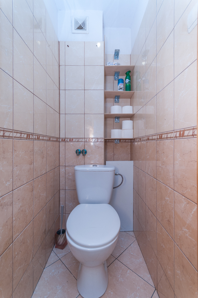 Wchodząc do mieszkania z przedpokoju kierujemy się na prawo do widnej kuchni o powierzchni 6,4mkw. Z przedpokoju na wprost mamy wejście do łazienki 4,4mkw (kabina prysznicowa, okno) a także do osobnego WC - 0,8mkw.