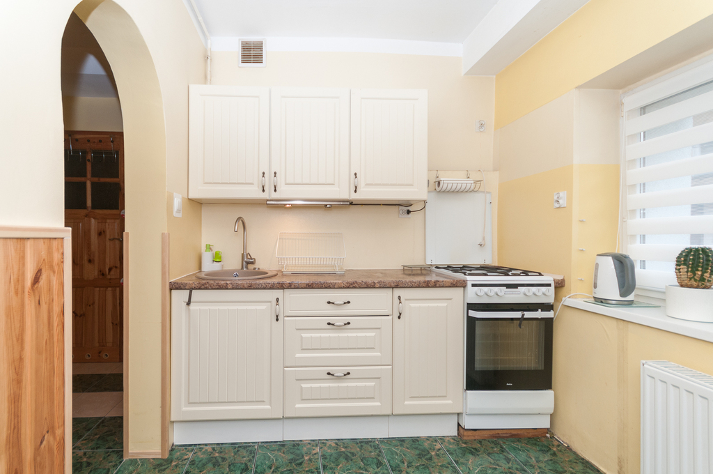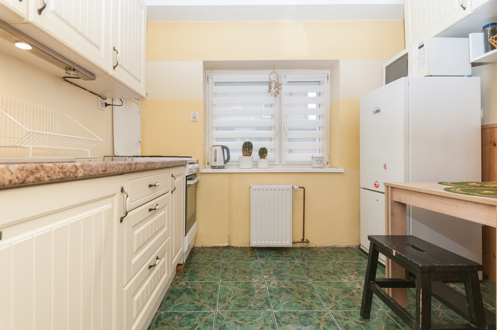 Mieszkanie znajduje się na niskim parterze z oknami na dwie strony budynku - na ulicę i podwórze.