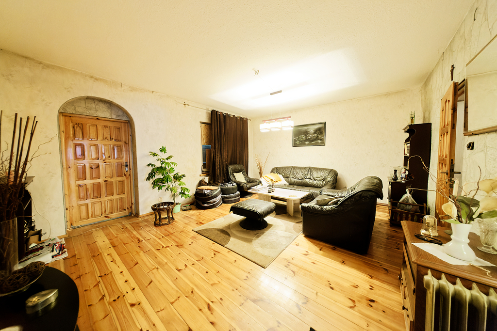 Wnętrze z ogromnym potencjałem - przestronne pokoje dające znaczne możliwości aranżacyjne. Spory metraż, dwie kuchnie, dwie łazienki oraz toaleta. Garaż plus miejsce parkingowe. Można go także zaadaptować na pokoje na wynajem.
