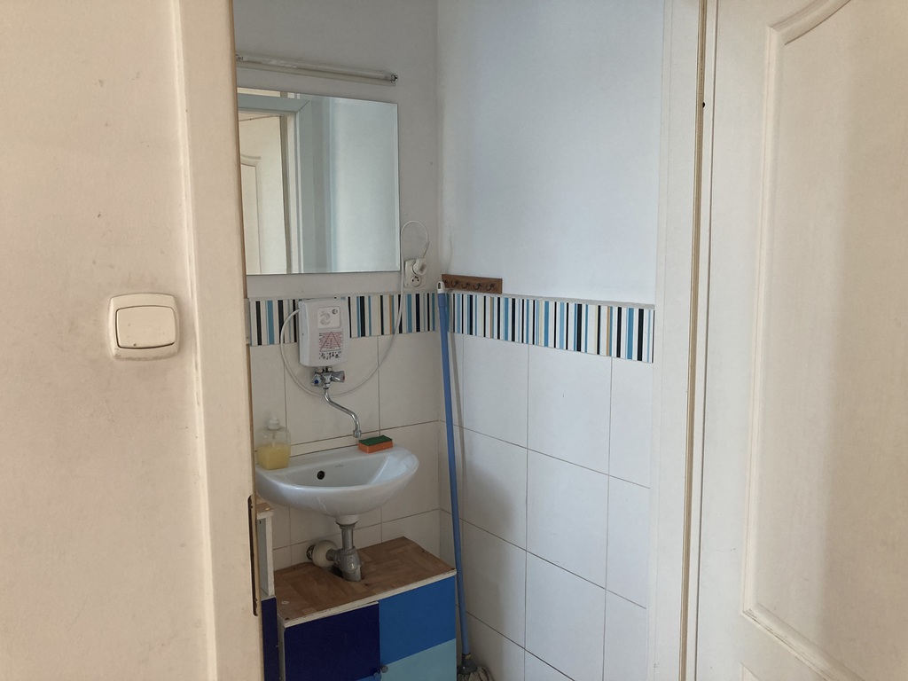 Toaleta znajduje się na korytarzu, obok lokalu.