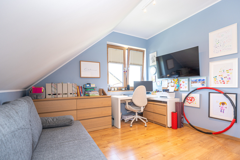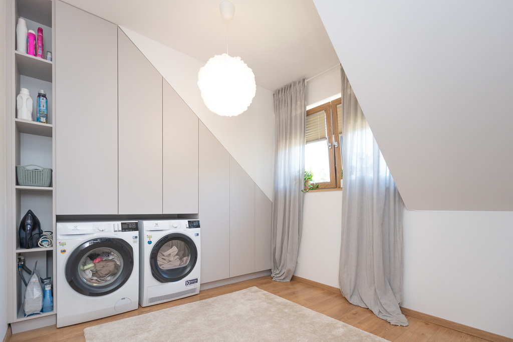 - pokoju (obecnie wykorzystywanego jako garderoba z suszarnią),
