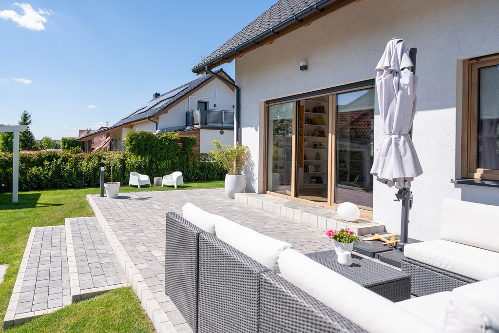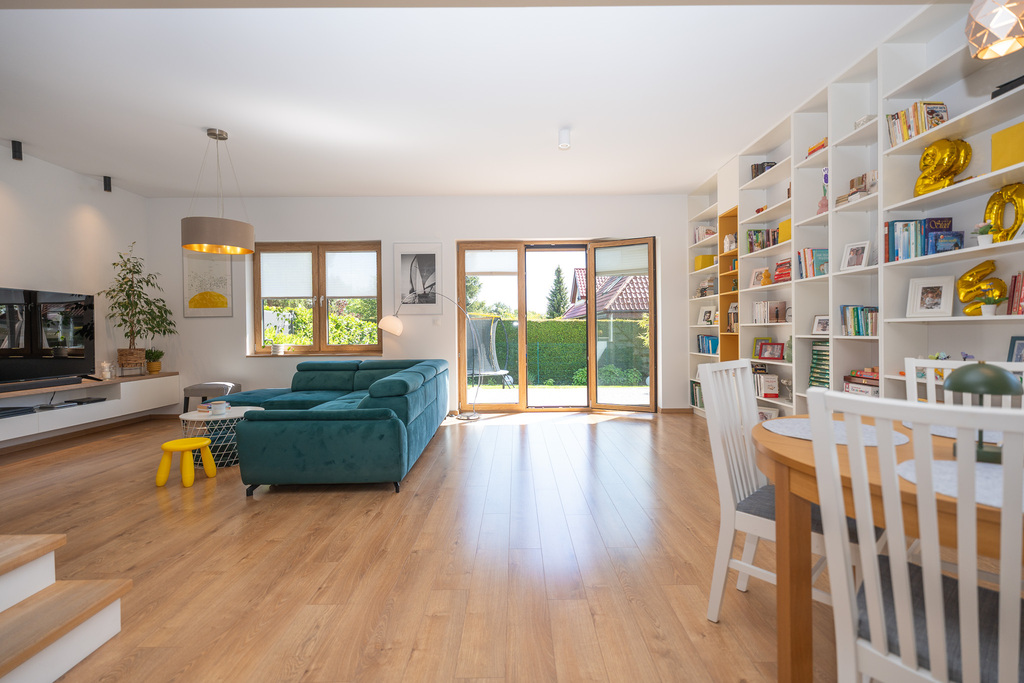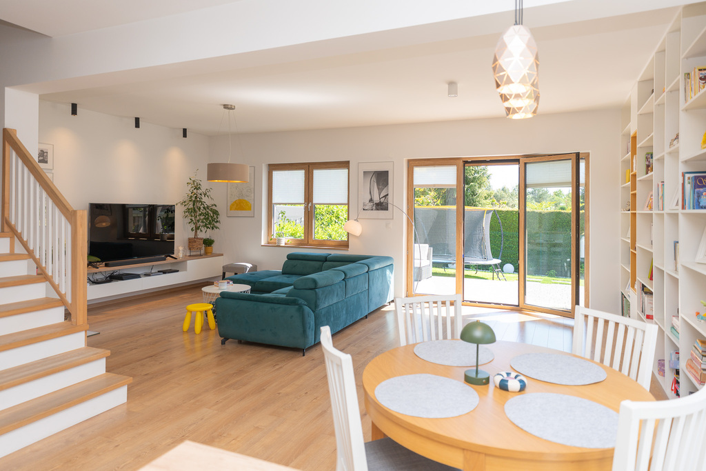- pokoju dziennego z wyjściem na zagospodarowany taras i do ogródka ,