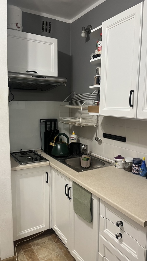 Mieszkanie składa się z pokoju, kuchni w aneksie z stałą zabudową kuchenną na wymiar ze sprzętem AGD.