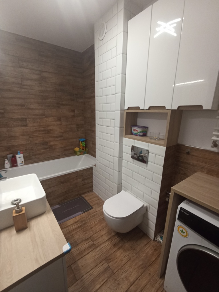łazienka razem z wc; wanna, umywalka, miejsce na pralkę - 5,24m2