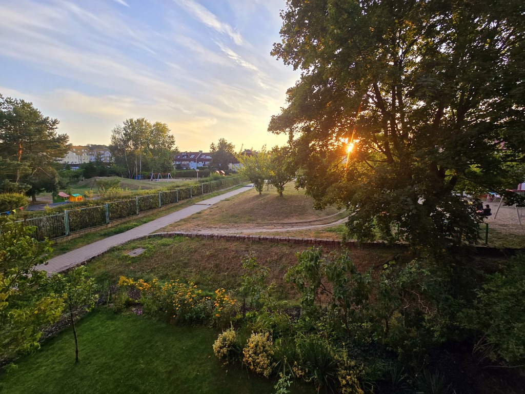 Otoczenie bloku jest pełne zieleni, z okien słychać śpiew ptaków. Przy bloku jest również ogromny parking, z kilku stron.