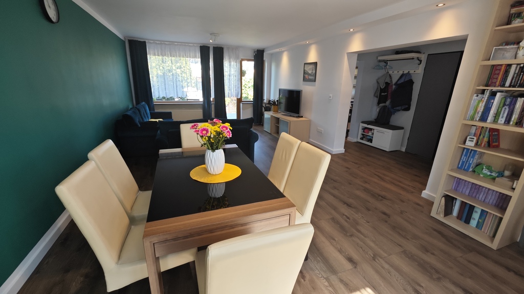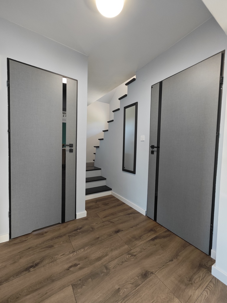 Nieruchomość w ciągu ostatnich dwóch lat przeszła bardzo wiele prac remontowych. Właściciele w większości pomieszczeń wygładzili i pomalowali ściany. Na parterze nowe panele w salonie, kuchni i przedpokoju. Nowe drzwi wewnętrzne w dolnej łazience i wiatrołapie plus całkowicie nowe drzwi zewnętrzne antywłamaniowe (wymienione na początku tego roku). Całkowicie nowa kuchnia (meble w zabudowie plus sprzęt AGD). Wszystkie okna w całym domu wymienione na nowe drewniane (wymiana okien zakończona pod koniec 2024 roku) plus wszędzie nowe parapety (pozostały jeszcze do pomalowania ściany przy samych świeżo wymienionych oknach i parapetach). W większości domu została wykonana nowa instalacja elektryczna. Dodatkowo wykonano ozdobne oświetlenie punktowe w salonie, kuchni, jednej z sypialni oraz w dolnej łazience.