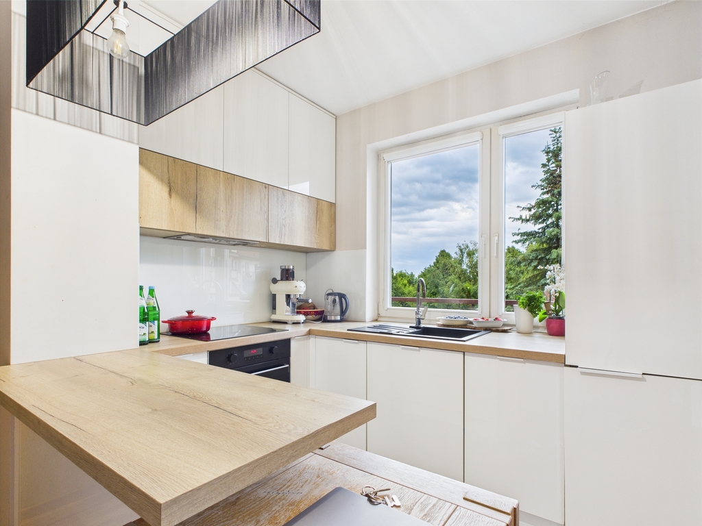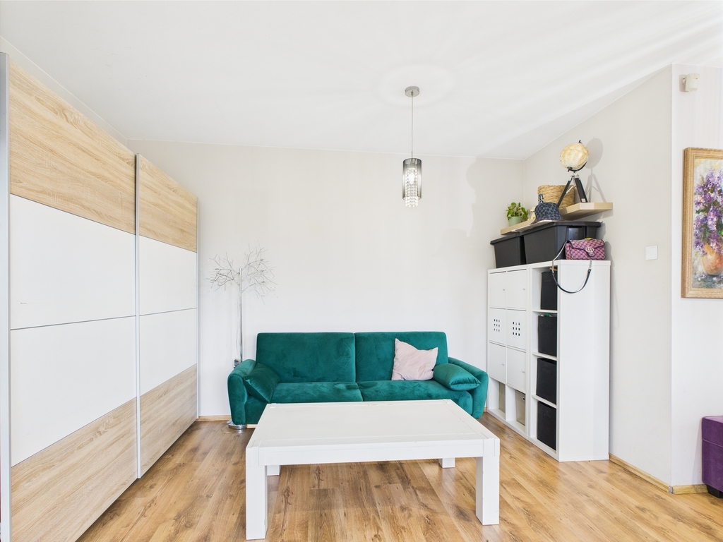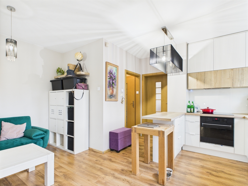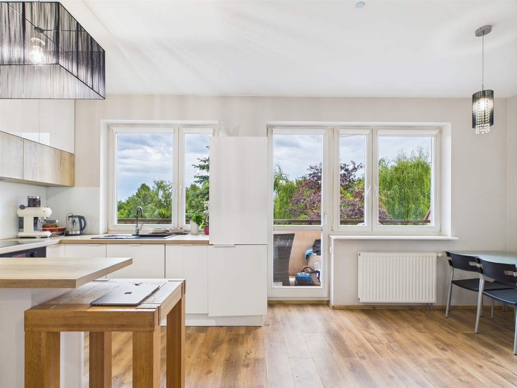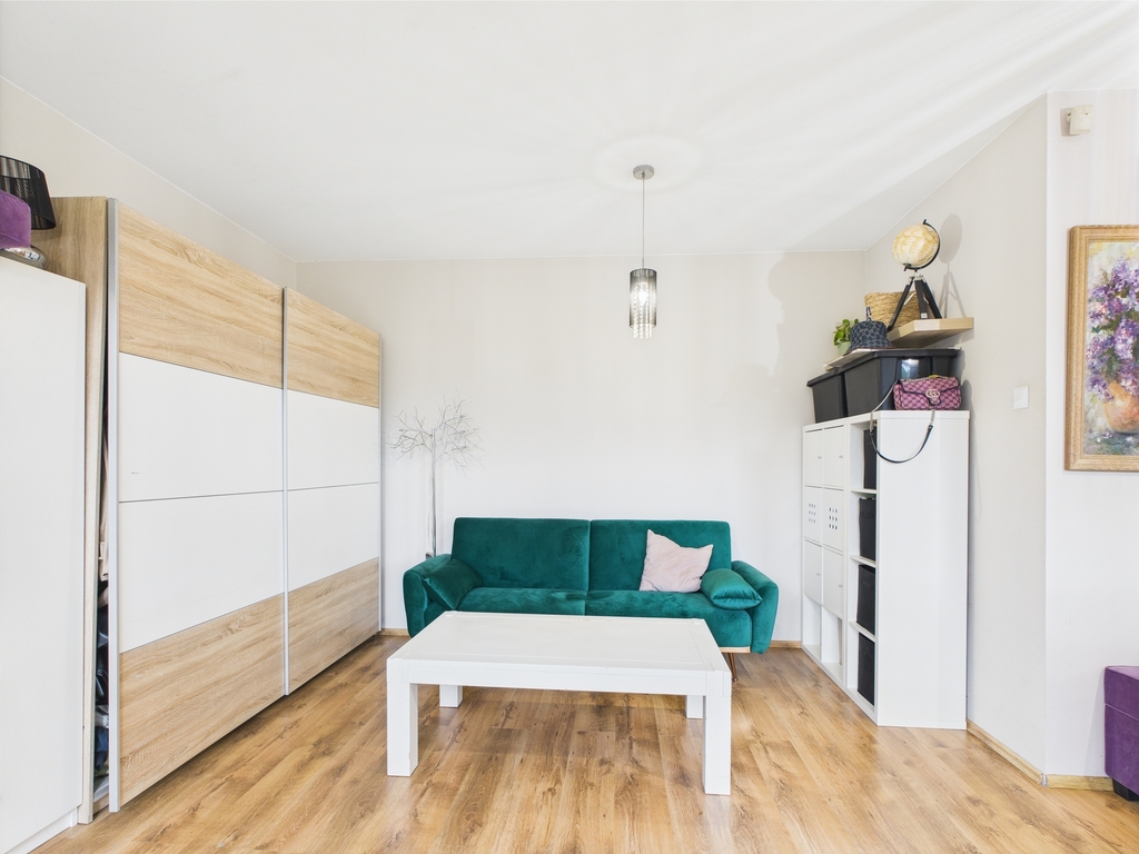 Wnętrze zachwyca jasnością i fajnym układem – duże okna wpuszczają do środka mnóstwo naturalnego światła, dzięki czemu przestrzeń wydaje się jeszcze większa. Salon połączony z aneksem kuchennym stwarza przytulny klimat, zachęcając do spotkań i rekreacji, podczas gdy osobna sypialnia gwarantuje spokojny sen. Wszystko utrzymane jest w dobrym stanie technicznym, z zachowaną czystością i przejrzystym rozkładem pomieszczeń.