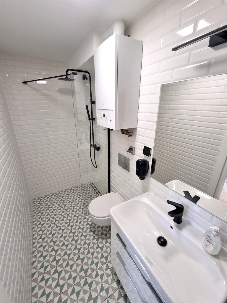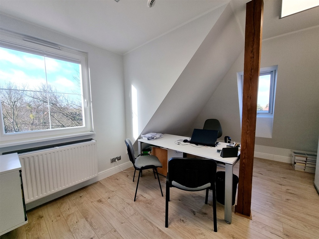 Wszystkie instalacje są nowe, ściany gładzone i malowane. Całkowicie wyremontowana została również łazienka z kabiną prysznicową typ walk-in, umywalką i toaletą. Wszystko z materiałów wysokiej klasy, w eleganckim stylu. Uroku tej wyjątkowej nieruchomości nadają odrestaurowane drewniane elementy poddasza.