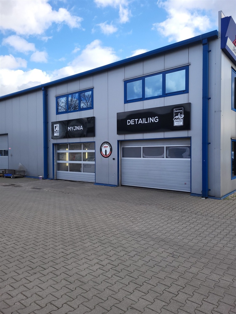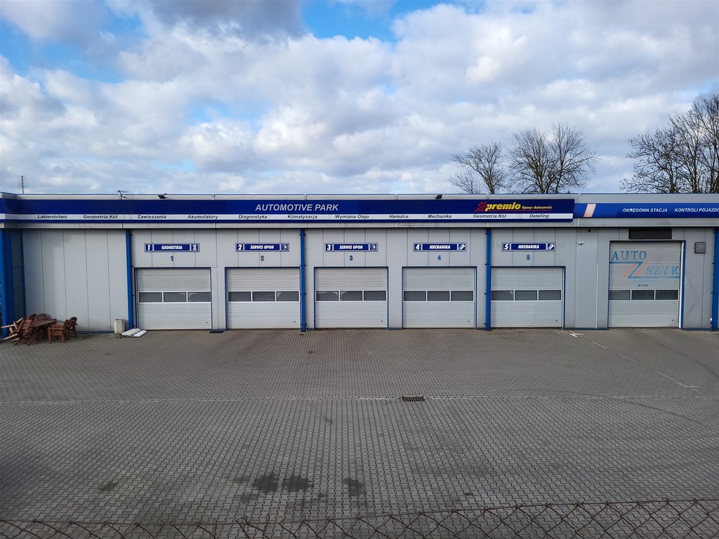 Nieruchomość zabudowana dwoma budynkami serwisowymi oraz jednym magazynowym