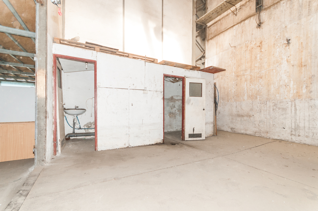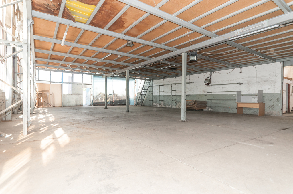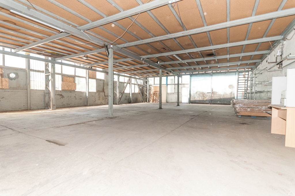 Hala składa się z dwóch części - część główna o wymiarach 18 x 12m (216mkw) i wysokości ok 2m,. Nad tą częścią dostępna antresola. Z części parteru wejście do drugiego pomieszczenia o powierzchni ok. 33mkw (5,9 x 5,7m) - tu też wydzielony sanitariat. Do obiektu prowadzi otwierana duża brama wjazdowa.