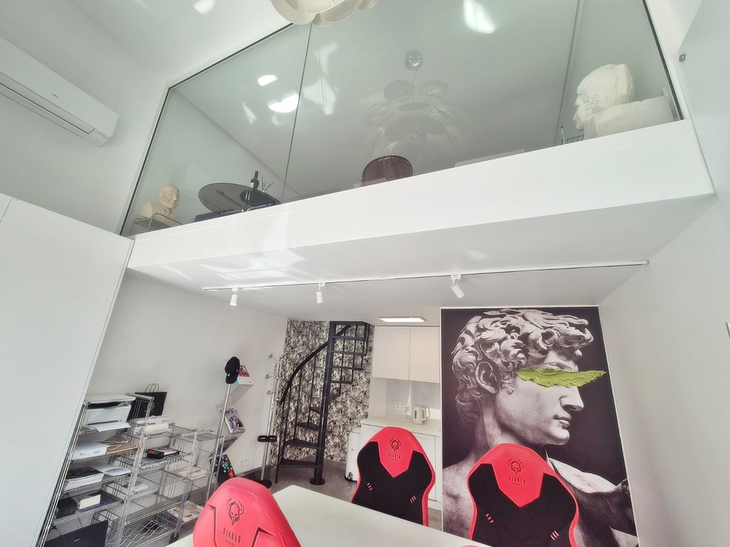Antresola (20 m2): druga bardziej kameralna strefa - idealna do pracy indywidualnej, spotkań lub relaksu.