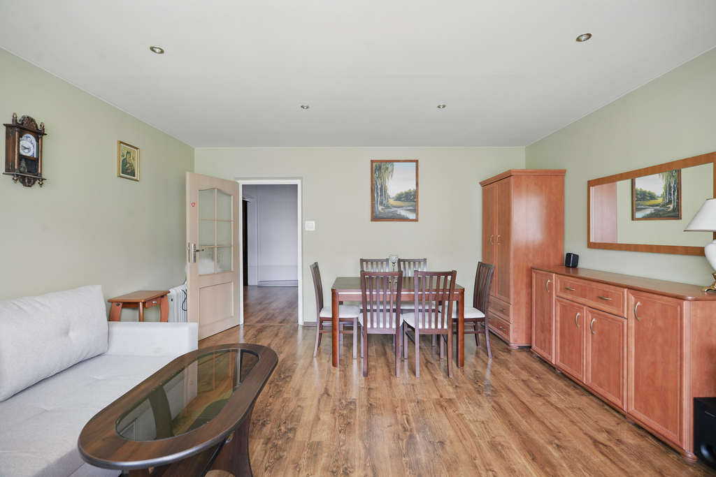 Mieszkanie środkowe, ciepłe i dobrze nasłonecznione. Ogrzewanie i ciepła woda z sieci miejskiej.