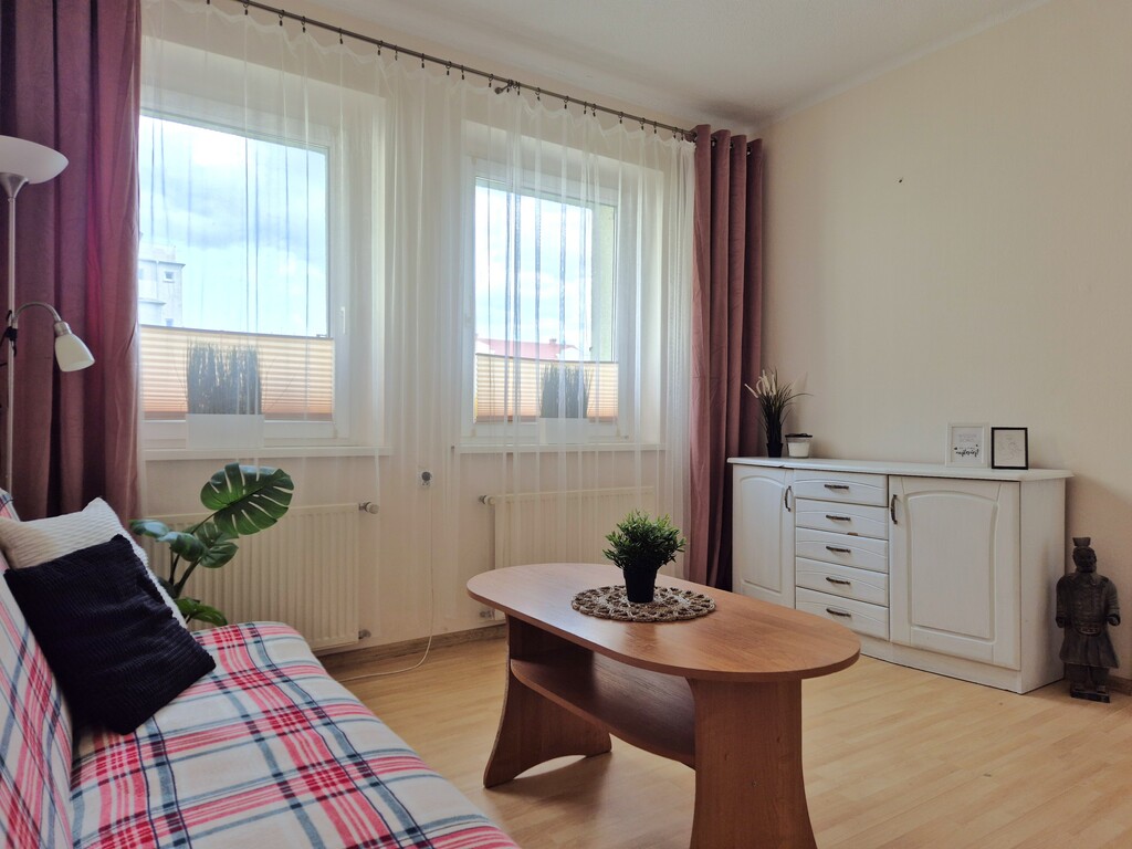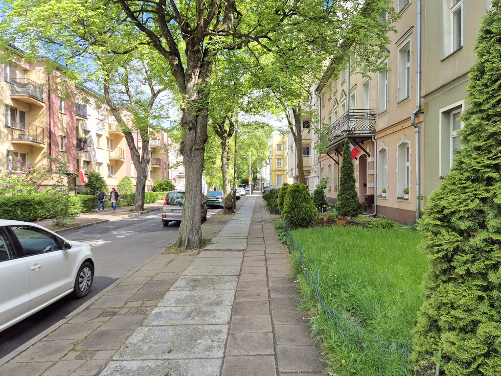 Mieszkanie położone jest w zielonej okolicy – do Parku Chopina mamy 200m, a do Parku Zdrojowego 450m. Najbliższy sklep typu Żabka oddalony jest o zaledwie 300m, w pobliżu znajdziemy też restauracje, przedszkola, liceum, place zabaw i liczne atrakcje Świnoujścia, m. in. Fontannę Śruba. Tuż obok budynku usytuowany jest przystanek skąd odjeżdżają autobusy linii 6 i A. Do promenady odległość wynosi 850m, a do Plaży 1km.