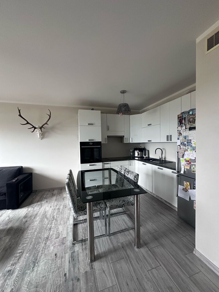 Mieszkanie w pełni wyposażone i gotowe do wprowadzenia bez dodatkowych nakładów finansowych. Aneks kuchenny wyposażony w meble robione na wymiar oraz pełne AGD marki BOSCH. Parapety wykonane z granitu. Wszystkie okna mieszkania wychodzą na jedną stronę – poranne słońce zapewnia naturalne doświetlenie wnętrz.