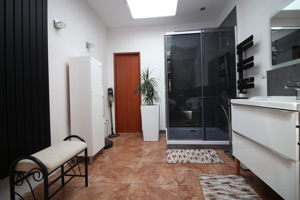 Na tej samej kondygnacji znajdują się również trzy ustawne sypialnie, przestronna garderoba oraz komfortowy toaleta