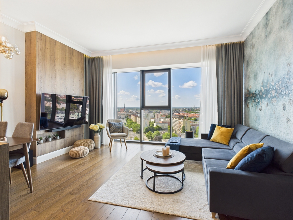 Na sprzedaż wyjątkowy apartament w prestiżowym Hanza Tower – 16. piętro z panoramicznym widokiem na Szczecin!