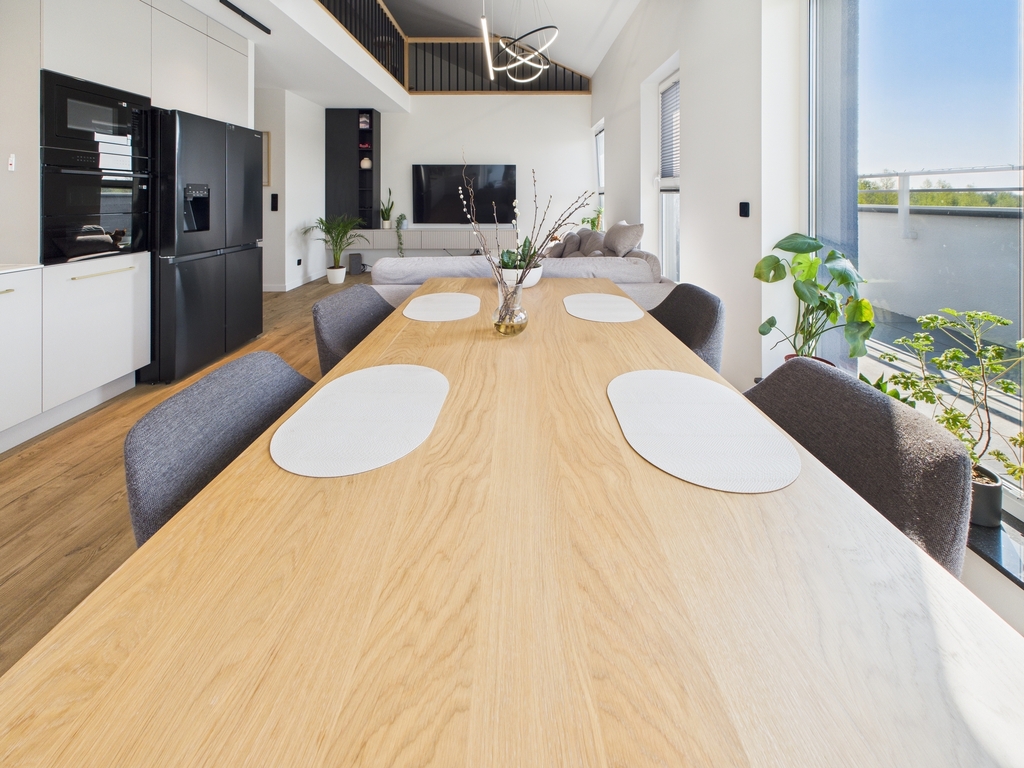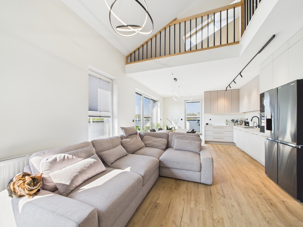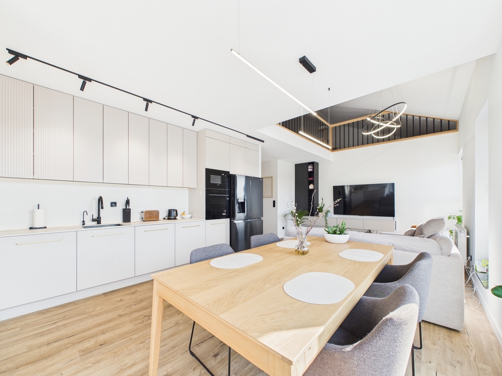 - Liczba pokoi: 5 (w tym 3 sypialnie, salon z aneksem kuchennym, pokój na antresoli)