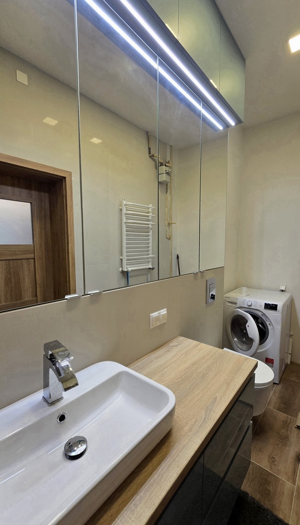 - położone zostały nowe podłogi, wymienione zostały okna na PCV 3.szybowe, wymieniono drzwi wejściowe i wewnętrzne, wykonano zabudowę kuchenną na wymiar z nowymi sprzętami AGD, wykonano gruntowny remont łazienki, wykonano nowe zabudowy typu komandor, wygładzono ściany, wykonano podwieszane sufity z ciekawym oświetleniem typu led.