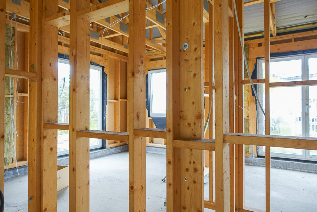 For sale in an intimate location, a newly built house with a wooden frame structure, with excellent quality 4-pane windows, a roof covered with ceramic tiles. Usable area 169.26 m2. On a plot of 704 m2. A reinforced frame structure, roof, windows, external joinery, horizontal and vertical insulation, partial insulation and electrical cables were made. HOUSE DESCRIPTION: frame structure, wooden reinforced with C24 class wood, walls made of 60 mm thick KVH wood. Wall structure covered with MPF board. Excellent quality 4-pane windows, 4-pane sliding terrace doors. The structure of rooms with the following parameters was designed and made: living room 40.9 m2, rooms 19.46 m2, 11.19 m2, 12.31 m2. Separate kitchen with a window of 11.14 m2 with an entrance to the pantry of 5.54 m2. The pantry provides an entrance to the garage of 36.66 m2. Entrance to the garage from the zero level, garage in the body of the building. Additionally, the house has 2 bathrooms, a utility room and a toilet. The area of the largest bathroom is 7.11 m2. In addition, a vestibule of 13.41 m2. From the living room, there is an exit through sliding doors to the covered terrace. A double panoramic window was also installed in the living room. A steep, wooden roof was made in a rafter-collar structure made of C4 wood, covered with ceramic, glazed roof tiles. The height of the rooms on the ground floor is 2.8 m, the height of the building is 6.75 m. Water supply, sanitary and rain sewage ZWiK Szczecin, gas and electricity supply. A garden water meter was designed. Foundations: battens and foundation ceilings, insulated, ceiling above the ground floor - wooden beams, prefabricated chimneys. Gas heating with a gas, condensing boiler has been designed, it is possible to make changes and use a heat pump. Reinforced external doors, no internal joinery. Garage doors, tilting. Walls partially insulated with mineral wool from the inside, external insulation with polystyrene has been designed. The base has been prepared for pouring the floor. Electrical installation cables have been distributed. Connection power 12kW. The building is located in an area where the MPZP is in force for single-family, detached housing development. To the public transport bus stop approx. 400-450 m (6 minutes).