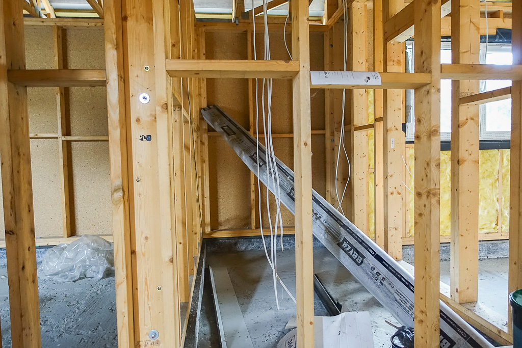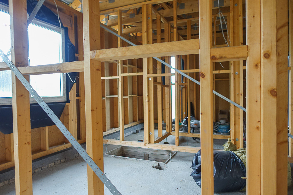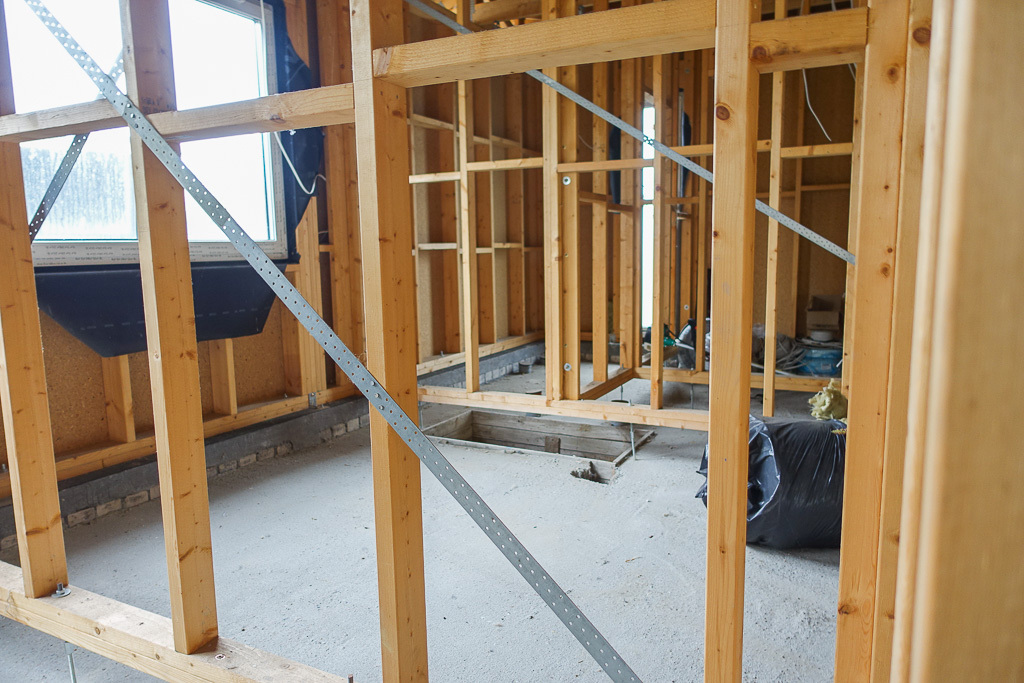 Fundamenty: łaty i stropy fundamentowe, izolowane, strop nad parterem - belki drewniane, kominy prefabrykowane. Zaprojektowano ogrzewanie gazowe z kotłem gazowym, kondensacyjnym, można dokonać zmiany i zastosować pompę ciepła. Drzwi zewnętrzne wzmocnione, stolarki wewnętrznej brak. Drzwi garażowe, uchylne. Ściany częściowo ocieplone wełną mineralną od środka, na zewnątrz zaprojektowano ocieplenie styropianem. Przygotowano podłoże na wylanie posadzki. Rozprowadzono kable instalacji elektrycznej. Moc przyłączeniowa 12kW.