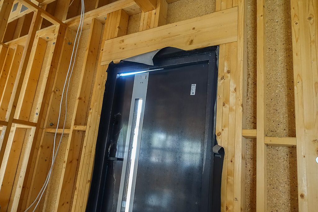 OPIS DOMU: konstrukcja szkieletowa, drewniana wzmocniona z drewna klasy C24, ściany z drewna KVH o grubości 60 mm. Konstrukcja ścian obłożona płytą MPF. Okna 4- szybowe świetnej jakości, drzwi tarasowe przesuwane 4 szybowe. Zaprojektowano i wykonano konstrukcję pomieszczeń o następujących parametrach: salon 40,9 m2, pokoje 19,46 m2, 11,19 m2, 12,31 m2. Kuchnia oddzielnie z oknem o powierzchni 11,14 m2 z wejściem do spiżarni 5,54 m2. Ze spiżarni przewidziano wejście do garażu o powierzchni 36,66 m2. Wjazd do garażu z poziomu zerowego, garaż w bryle budynku. Dodatkowo w domu 2 łazienki, pomieszczenie gospodarcze i WC. Powierzchnia największej łazienki 7,11 m2. Poza tym wiatrołap 13,41 m2. Z salonu wyjście rozsuwanymi drzwiami na zadaszony taras. W salonie zamontowano również podwójne okno panoramiczne. Wykonano dach stromy, drewniany w konstrukcji krokwiowo-jętkowej z drewna klasy C4, kryty dachówką ceramiczną, szkliwioną. Wysokość pomieszczeń na parterze 2,8 m, wysokość budynku 6,75 m.