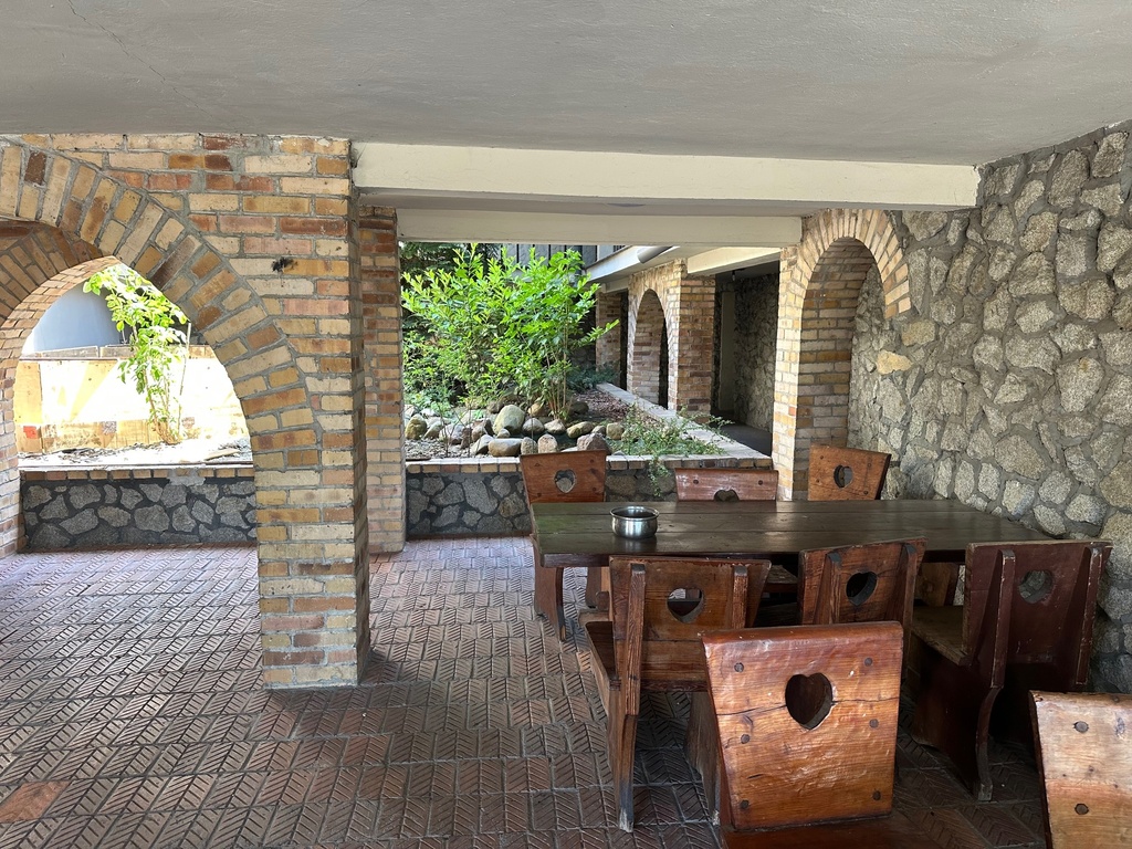 W środku budynku jest zielone patio z oczkiem wodnym i fontanną, na zewnątrz budynku wiele terenu zielonego z małym placem zabaw i możliwością zagospodarowania go według własnych potrzeb.