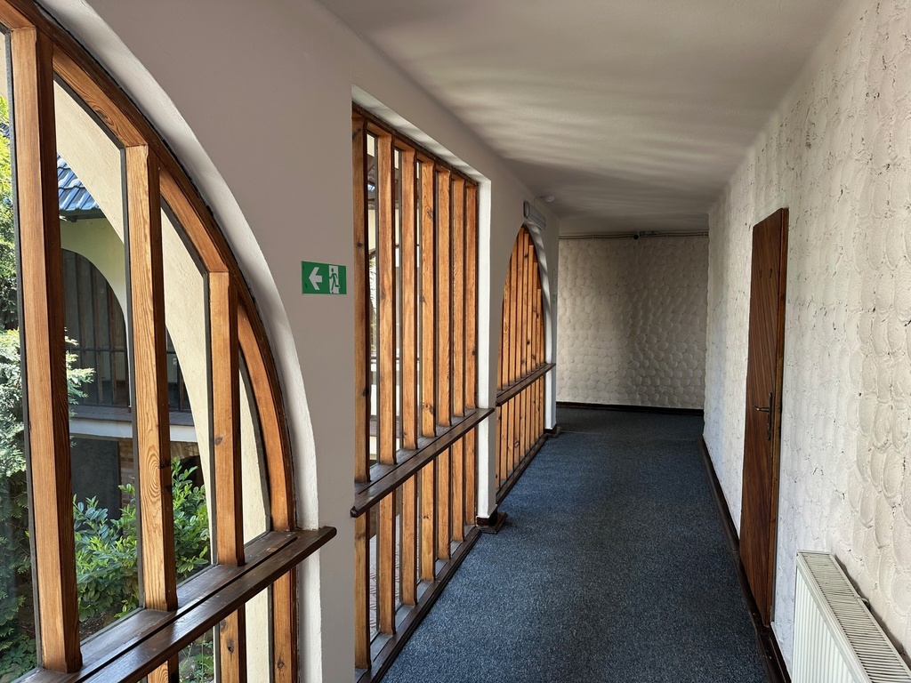 - Możliwość wyodrębnienia dużej sali o pow. ok. 125 m2 z własną kuchnią, kosztem 3 pokoi - ok. 12 miejsc noclegowych