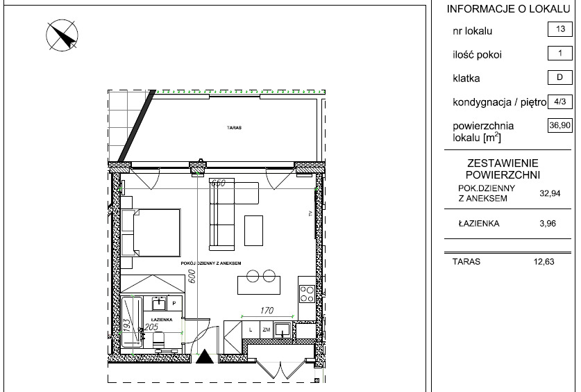 Duża kawalerka 37 m2 z tarasem, w budynku o podwyższonym standardzie