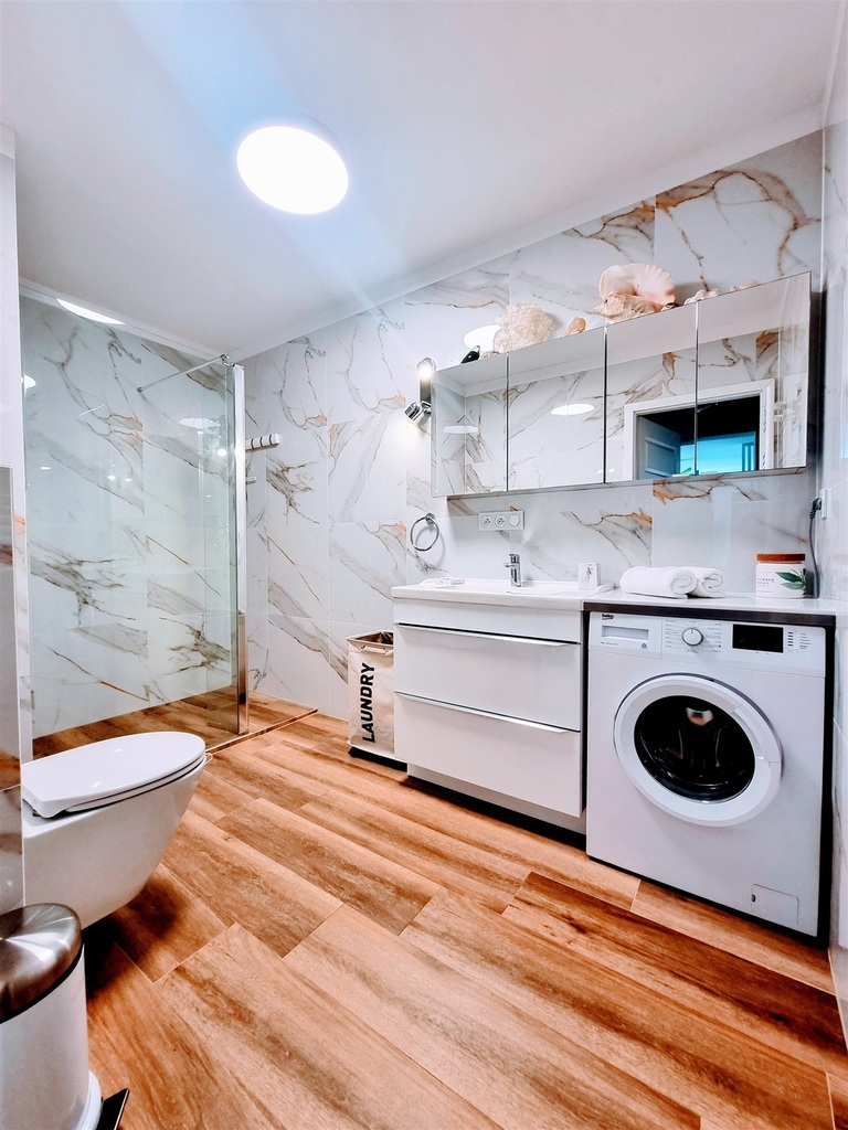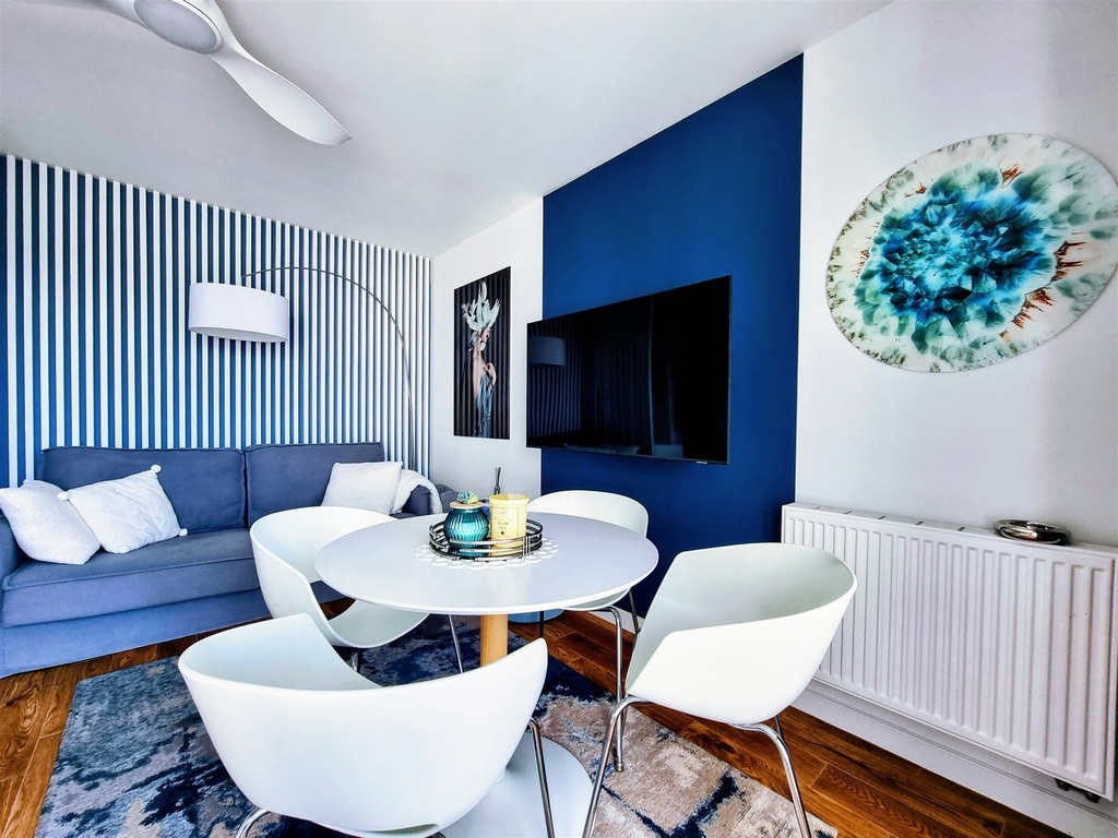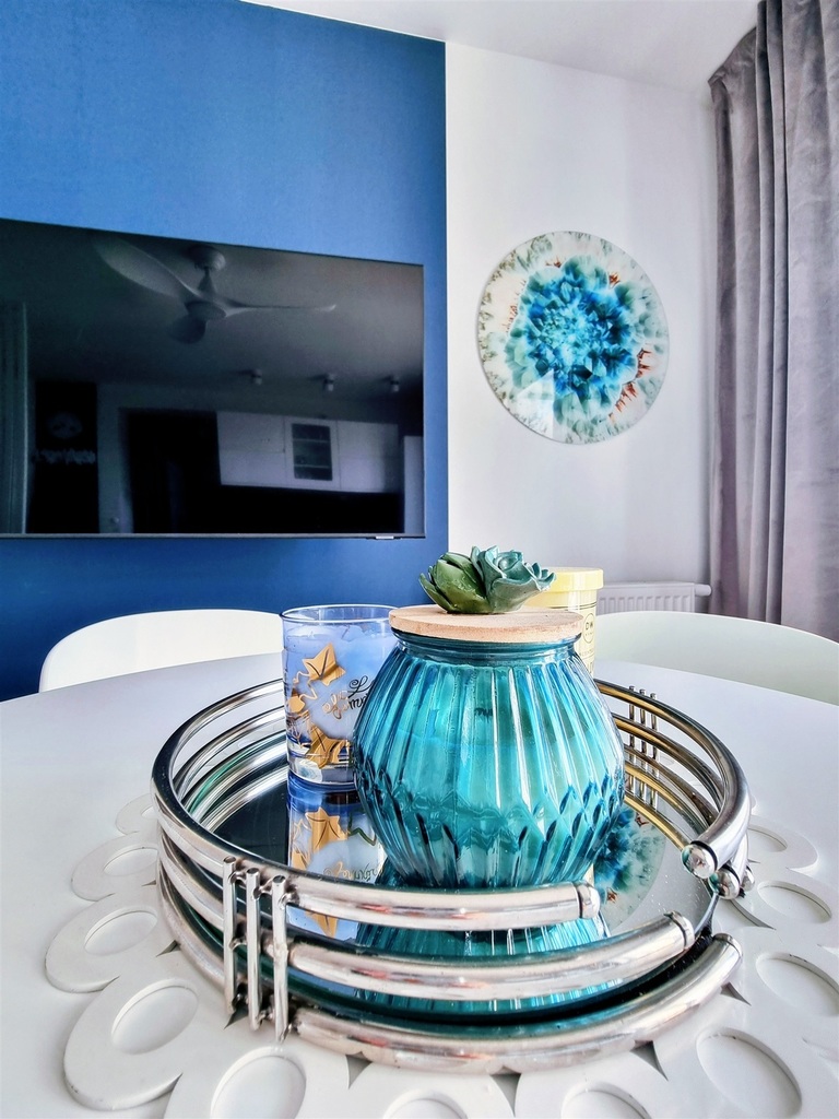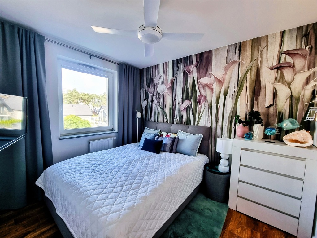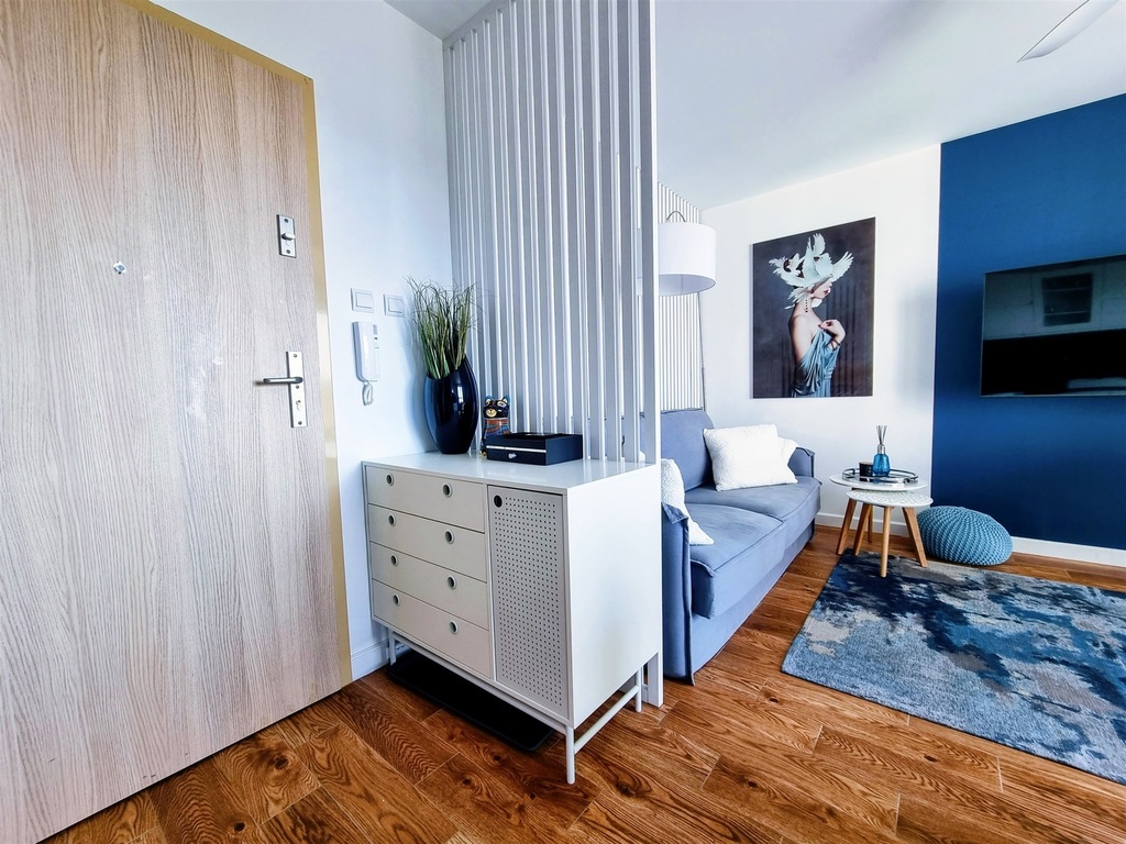 Całość urządzona w morskim klimacie, wykończona ze smakiem i elegancją. Apartament wyposażony jest w wentylatory i sprzedawany jest z całym wyposażeniem.