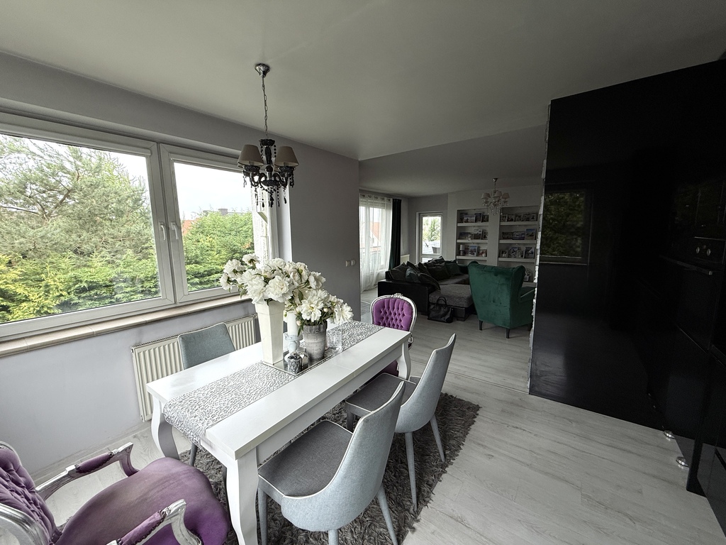 Na sprzedaż przestronny, dwupoziomowy apartament o powierzchni 157,5 m², zlokalizowany na spokojnym i rodzinnym osiedlu w Mierzynie w budynku z 2000 roku. Nieruchomość zachwyca funkcjonalnym układem, trzema słonecznymi tarasami. Mieszkanie wyróżnia się doskonałym doświetleniem dzięki ponad 20 oknom – w tym dużym oknom PCV oraz drewnianym oknom dachowym. Już od wczesnych godzin porannych naturalne światło wypełnia salon z ekspozycją wschodnią, tworząc przyjemną i ciepłą atmosferę. Co szczególnie istotne – z każdego okna oraz z każdego z trzech tarasów roztacza się widok na zieleń. Brak bezpośredniego sąsiedztwa okno w okno gwarantuje pełną prywatność i komfort życia. To idealna przestrzeń dla osób ceniących spokój, kameralność i poczucie intymności, jakie daje otoczenie zieleni i przemyślana architektura osiedla.