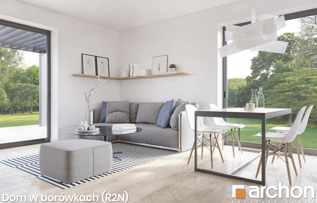- Salon z jadalnią, aneksem kuchennym oraz bezpośrednim wyjściem na taras 28,81 m2