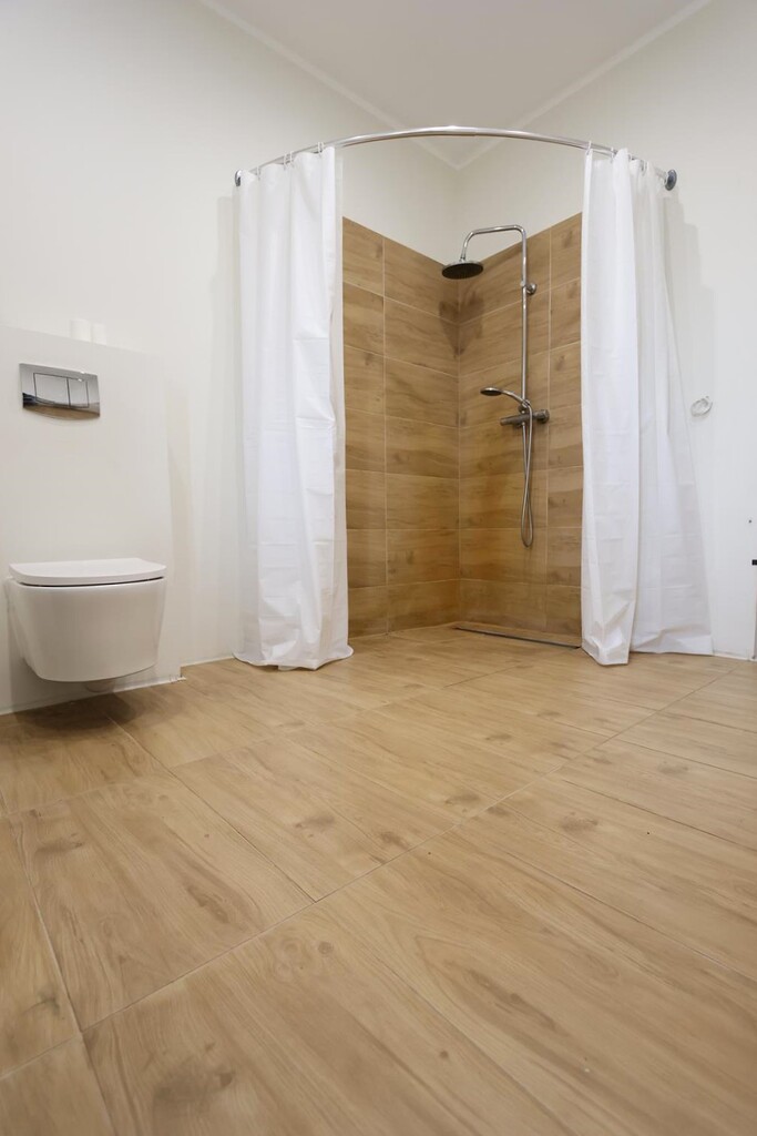 Dom wyposażony jest w ogrzewanie podłogowe oraz bufor ciepła zasilany instalacją fotowoltaiczną, co zapewnia niskie koszty eksploatacji i niezależność energetyczną. Woda pochodzi z własnego ujęcia (studni), a ścieki odprowadzane są do szczelnego zbiornika bezodpływowego (szamba).