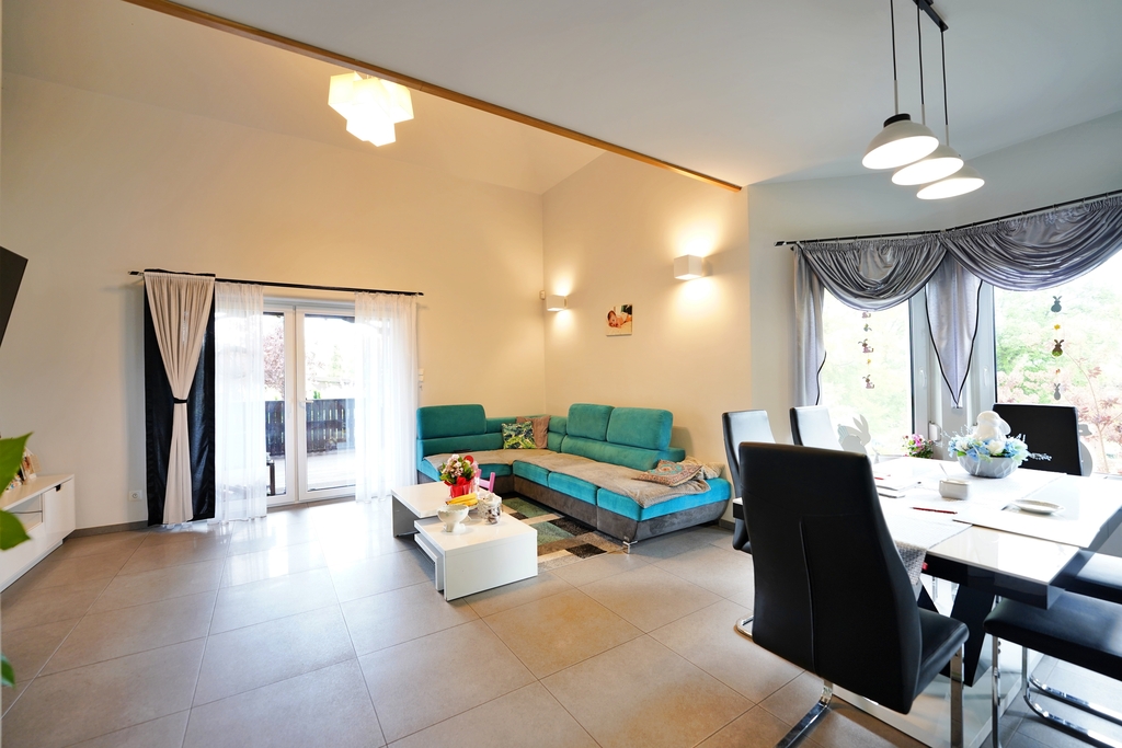 - otwarta kuchnia z jadalnią i salonem,