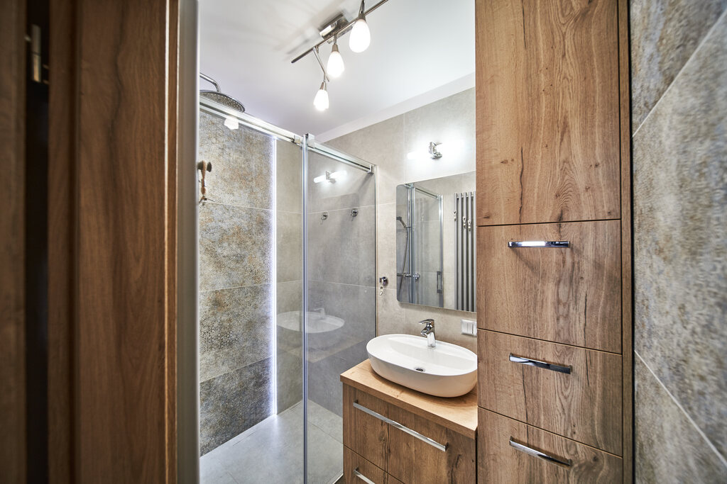 ✔ Łazienki z kabiną prysznicową i odpływem liniowym