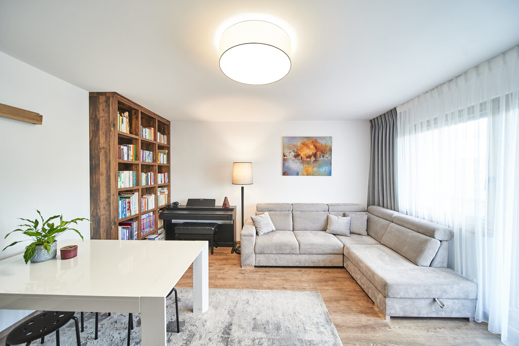 Mieszkanie o powierzchni 73,9 m² znajduje się na 3 piętrze niskiego bloku i wyróżnia się funkcjonalnym umeblowaniem idealnym dla rodziny.