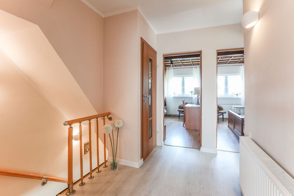 • przedpokój z wejściem na strych (możliwość adaptacji pod przechowywanie)