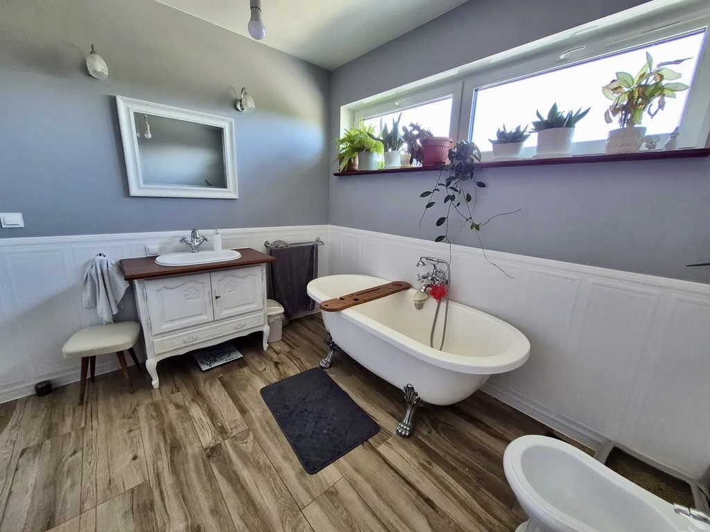 - dużej łazienki z wanną wolnostojącą i toaletą, bidetem,