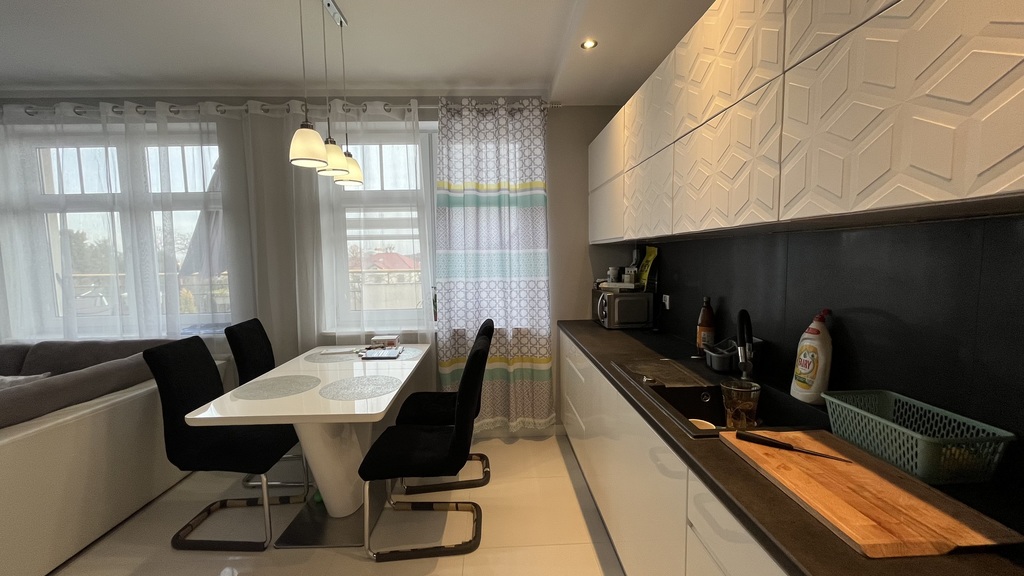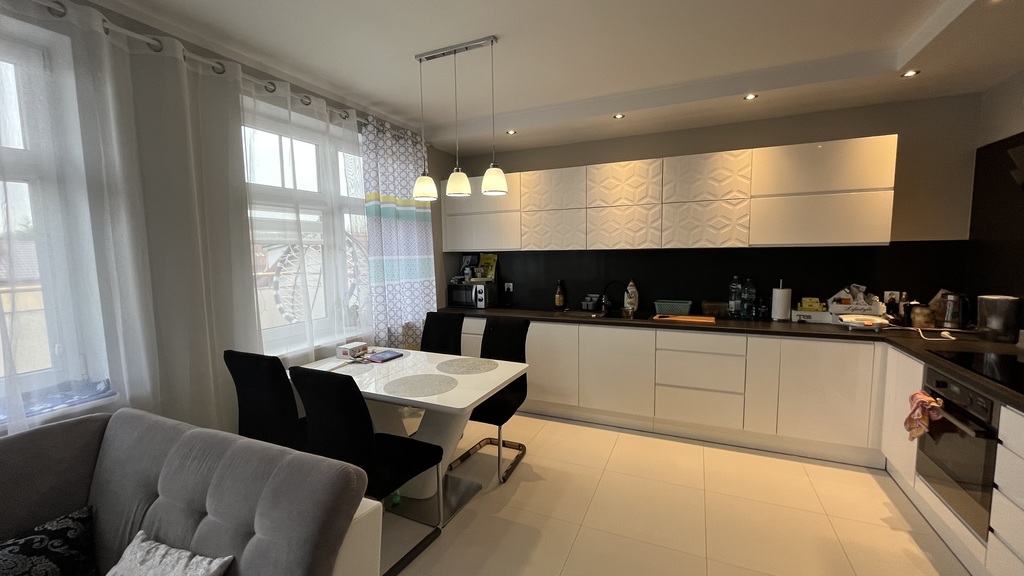 Kuchnia posiada nowoczesną zabudowę kuchenną na wymiar , nowy sprzęt AGD wysokiej klasy(firmy electrolux),nowa glazura i terakota.