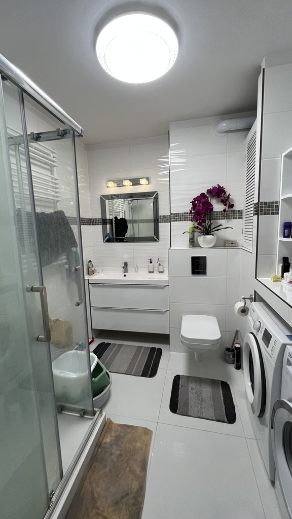 Łazienka w nowej glazurze i terakocie z kabiną prysznicową oraz z w.c.
