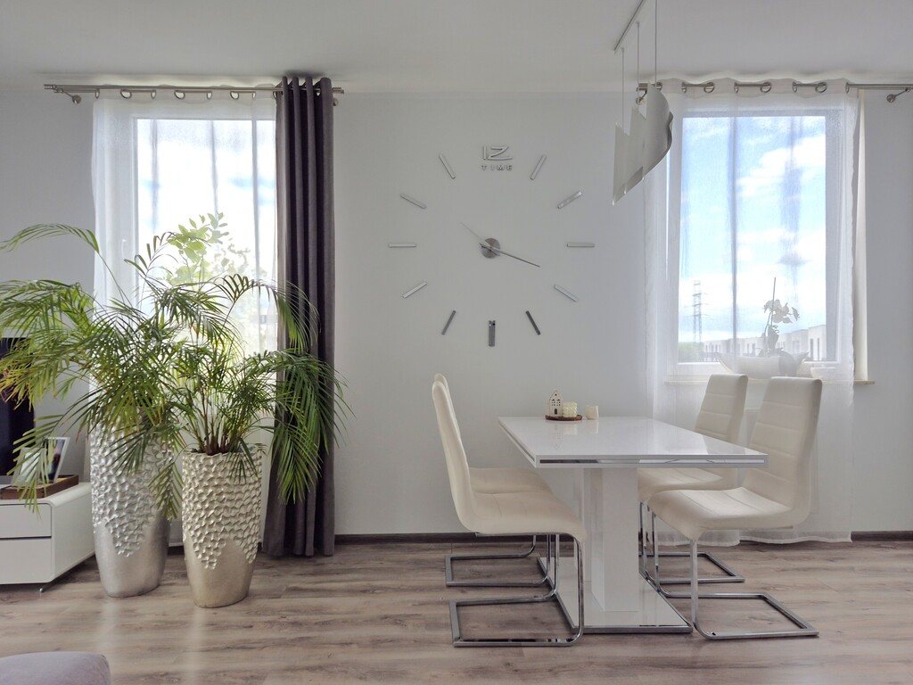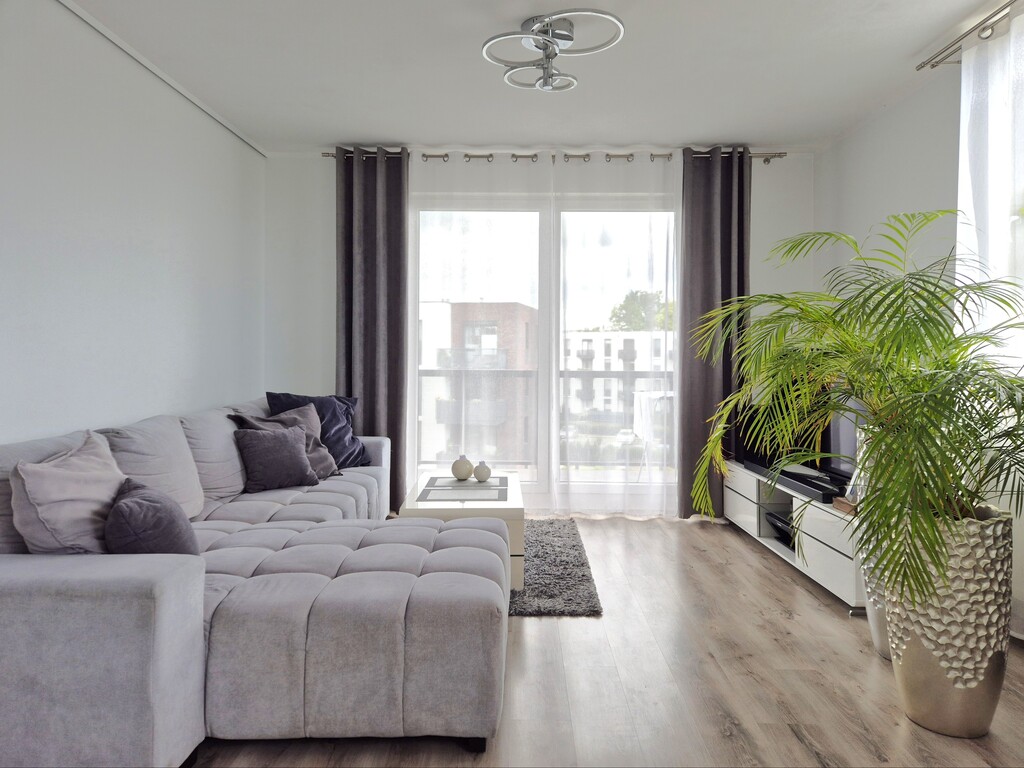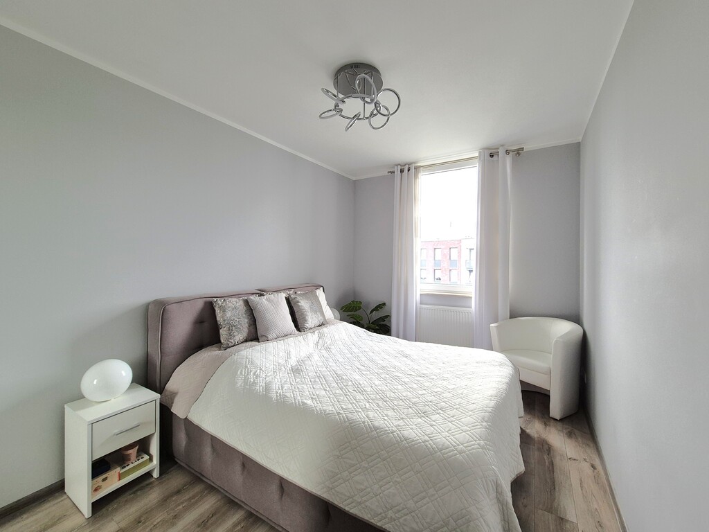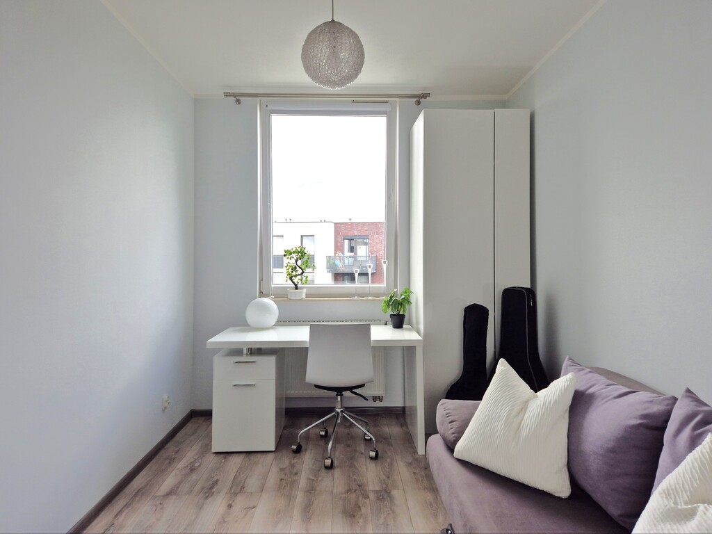 To 3 pokojowe mieszkanie z balkonem na popularnym osiedlu Nowa Cukrownia zostało urządzone w stonowanej, eleganckiej kolorystyce- dominuje biel i odcienie szarości. Do wykończenia i umeblowania użyto materiałów i mebli wysokiej jakości, co gwarantuje komfort użytkowania i jakość na lata.