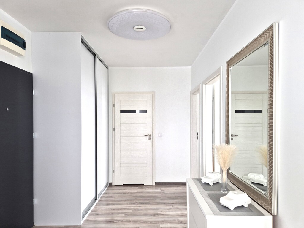 * przestronny przedpokój z pojemną szafą w zabudowie