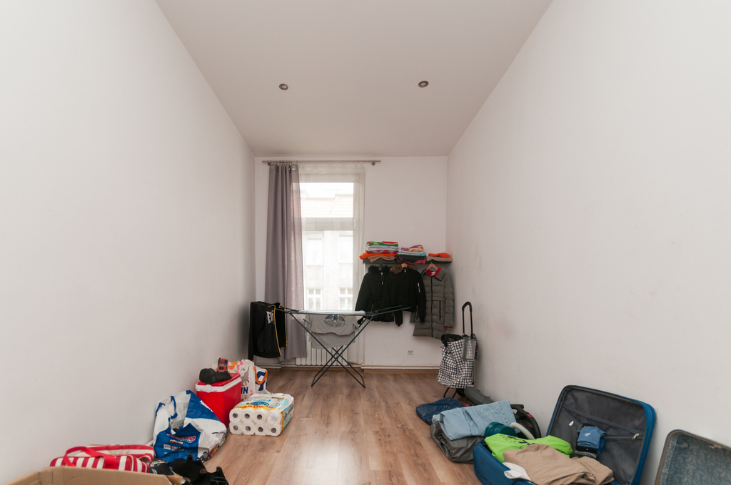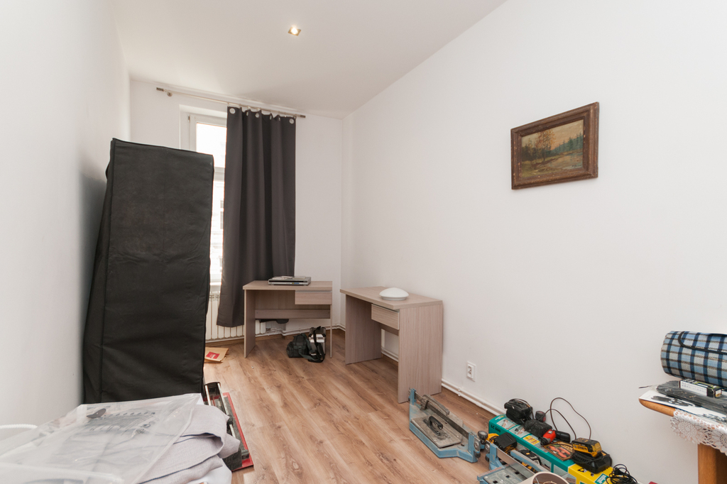 Dwa pokoje od strony ulicy - z większego pokoju wejście do mniejszego.