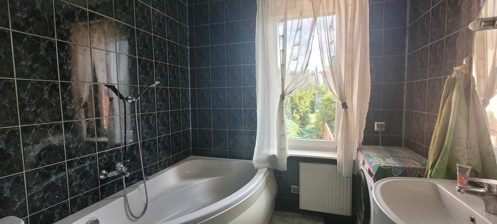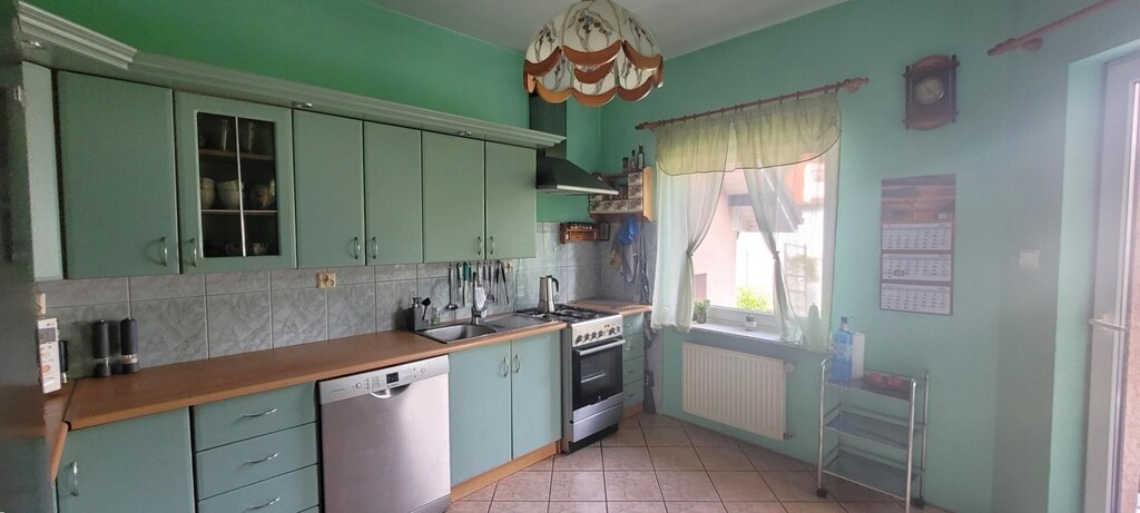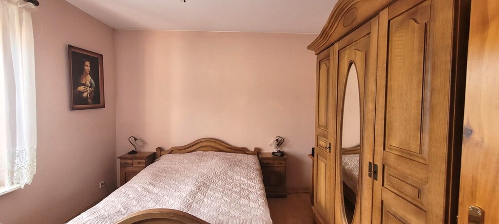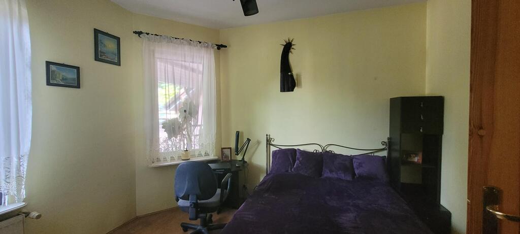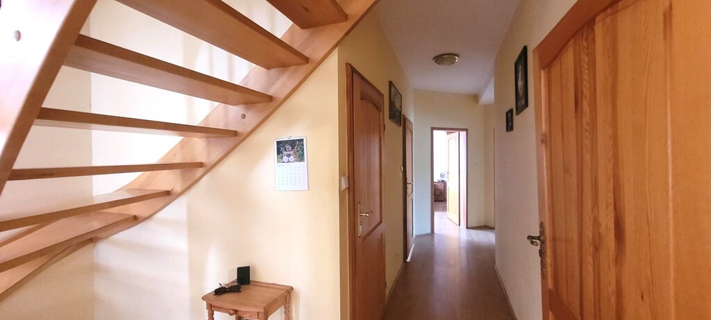 Dom wybudowany w 1998 roku, w technologii tradycyjnej, docieplony stopieniem, utrzymany w dobrym stanie, modernizowany w miarę potrzeb. Okna - PCV oraz drewniane. Podłoga- panel oraz terakota, na poddaszu -wylewka betonowa. Ściany - gładź - malowane. Kuchnia umeblowana - meble i wyposażenie AGD pozostaje w cenie. Z kuchni wyjście na taras od strony pd-wsch. z salonu wyjście na taras od strony pd - zach.