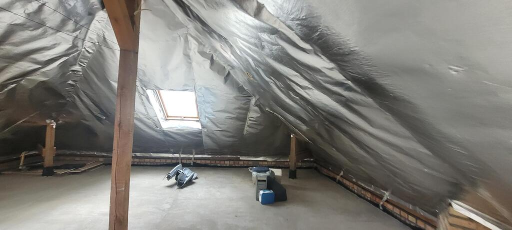 Na poddasze z korytarza prowadza wygodne drewniane schody. Cała powierzchnia została przygotowana do wykończenia przez nowego właściciela. Znajdują się tu pomieszczenia dostosowane pod względem doprowadzonych mediów na: kuchnię, łazienkę, 2 sypialnie oraz obszerny salon. Pomieszczenia są doświetlone światłem dziennym poprzez okna połaciowe.