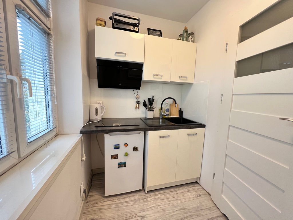 •Kawalerka o powierzchni około 18 m², z aneksem kuchennym i łazienką, idealna na wynajem krótkoterminowy lub jako kompaktowa przestrzeń mieszkalna.