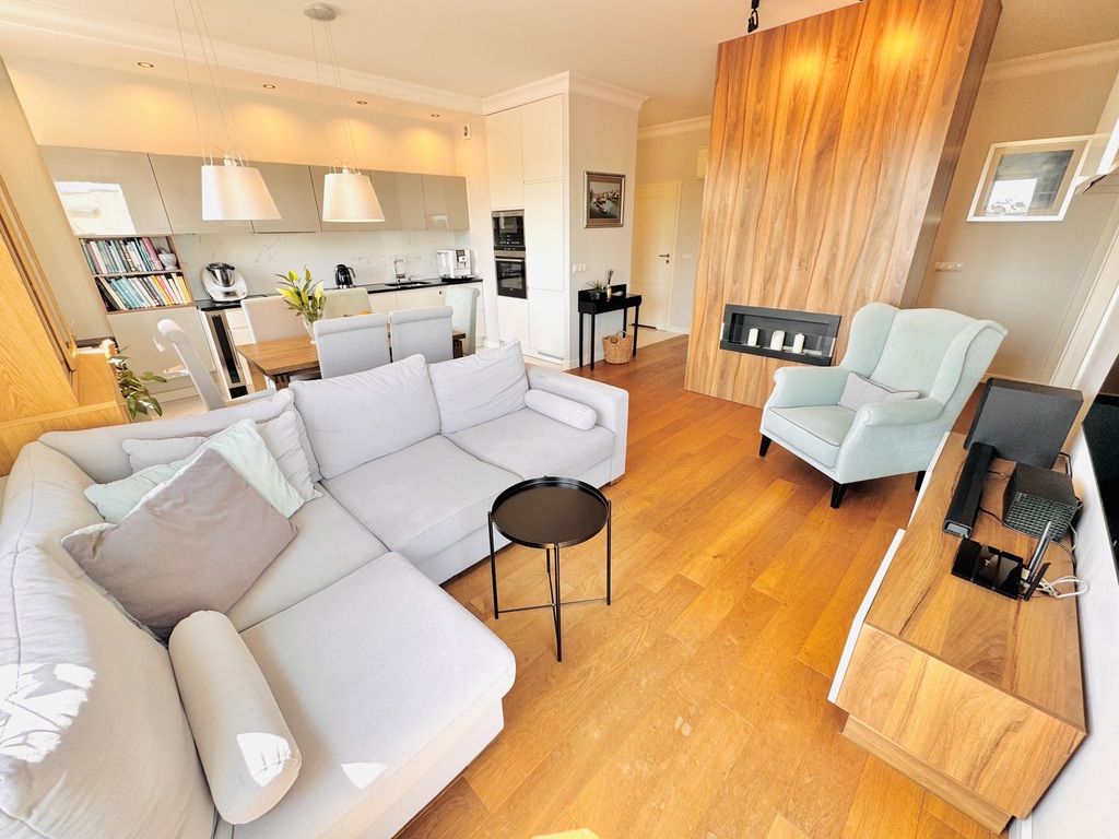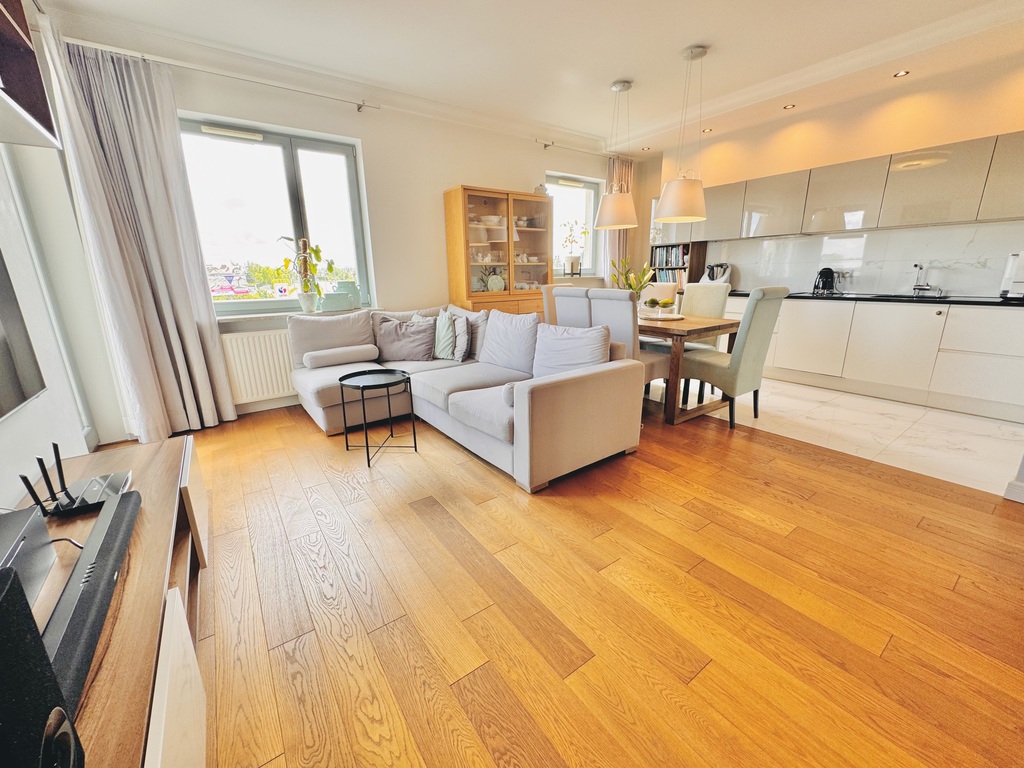 - salon (ok. 29 m2) z wyjściem na duży 7 m2 balkon. Kuchnia w formie aneksu, wyposażona w wysokiej jakości sprzęt agd.