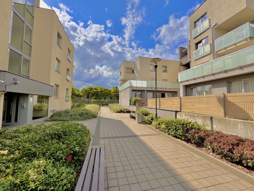 Osiedle strzeżone i monitorowane z liczną roślinnością, placem zabaw i miejscami parkingowymi.