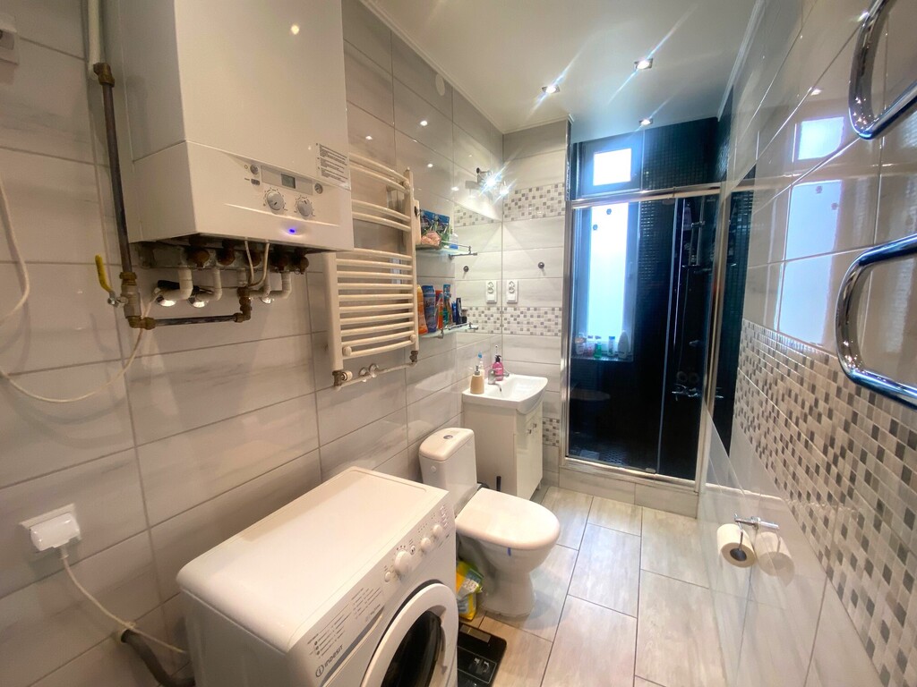 • Łazienka: Z oknem, wyposażona w kabinę prysznicową, WC i umywalkę