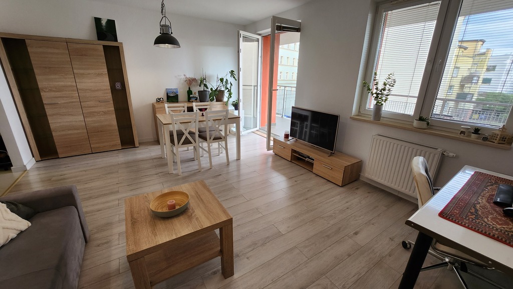 Na wynajem duże 2-pokojowe mieszkanie, bardzo jasne, przestronne zlokalizowane w nowym budynku z 2017r z windą. W pobliżu komunikacja miejska - Autobusy, tramwaje, SP, przedszkole, Fabryka Wody, liczne sklepy, markety, apteka, bardzo blisko do Wałów Chrobrego.