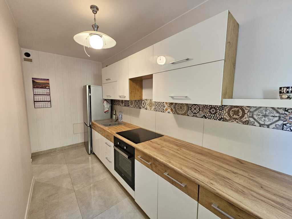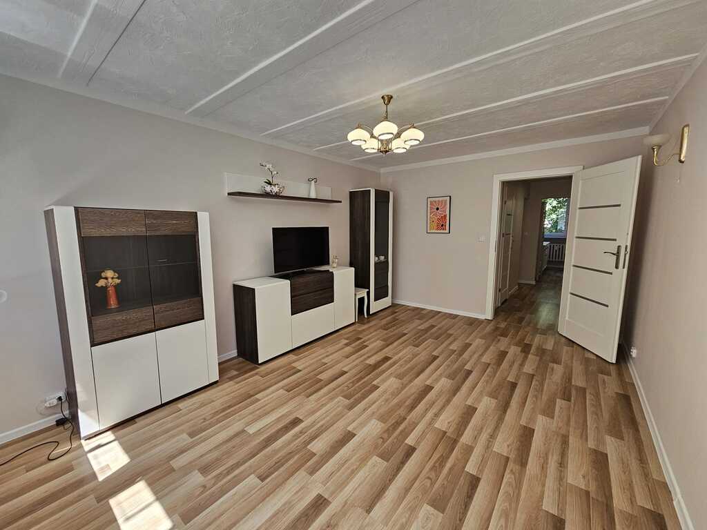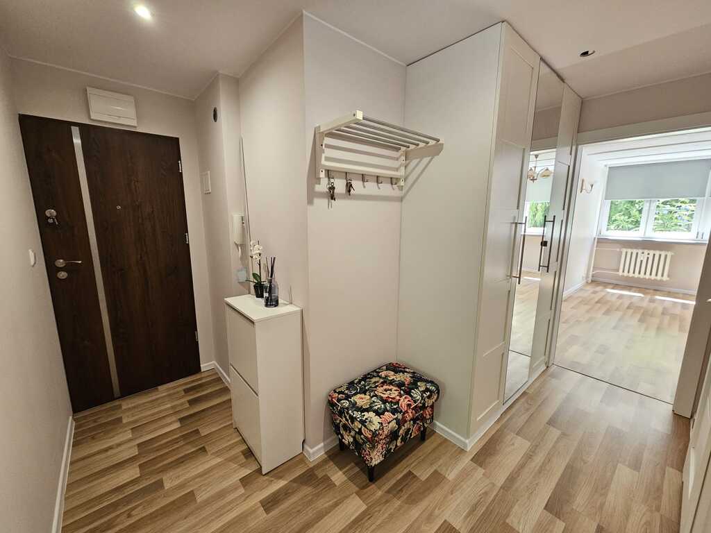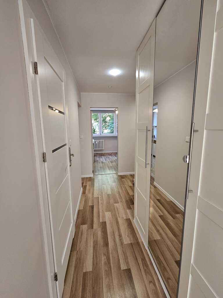 Przestrzenne pokoje rozkładowe o powierzchni 18m2 i 11m2. W największym pokoju duża wystawa okienna od strony południowej. Kuchnia 8m2 widna z oknem, z ładną zabudową ze sprzętem agd jak lodówka, płyta indukcyjna z piekarnikiem. W łazience 4m2 znajduje się kabina prysznicowa, wc, umywalka i pralka. Przedpokój z dużą szafą oraz komodą – 7m2.